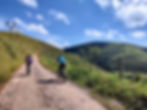 Como tudo que sobe, desce, assim que terminar a subida, você irá fazer uma longa descida que culmina em um lindo trecho mais arborizado do percurso, com casas de fazenda de ambos os lados.